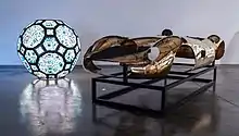 James gained international recognition in 2008 for his work Kalos Thanatos (KΘ), Greek for “beautiful death”, when he burned his Ferrari F335 Spyder in a birch forest, and then displayed it in a mirrored glass box with birch tree trunks. James was inspired by the ancient Greeks, who made sacrifices to Aphrodite in birch forests.[1] Glenn O'Brien lauded James's Kalos Thanatos: "I miss art going out on a limb ... Just a slim limb that looks like there’s at least some chance of it snapping ... Anthony James burned his Ferrari and put it in a box, amid, actually, a bunch of limbs. That was going for it ... this work is pretty gutsy".[2]
