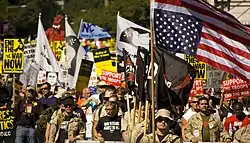 Opposition to the Iraq War significantly occurred worldwide, both before and during the initial 2003 invasion of Iraq by a United States–led coalition, and throughout the subsequent occupation. Individuals and groups opposing the war include the governments of many nations which did not take part in the invasion, including both its land neighbors Canada and Mexico, its NATO allies in Europe such as France and Germany, as well as China and Indonesia in Asia, and significant sections of the populace in those that took part in the invasion.[1][2] Opposition to the war was also widespread domestically.[3]