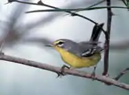 The warm-up hypothesis proposed by Schraft et al. (2016) seems to contradict the anti-exhaustion hypothesis .[2] This hypothesis foresees that birds have greater singing performance depending on the number of songs the bird has sung that day, known as recent practice, regardless of song type.[2] This study was carried out between March and June 2012 at the Cabo Rojo National Wildlife Refuge in Puerto Rico.[2] Male Adelaide's warblers, Setophaga adelaidae, recorded during their breeding season in their resident woods were found to have an average repertoire of 29 songs/male.[2]
