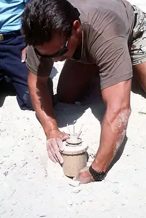Anti-personnel landmines (APLs) are a form of mine designed for use against humans, as opposed to anti-tank mines, which target vehicles.[1] APLs are classified into: blast mines and fragmentation mines; the latter may or may not be a bounding mine.[2]