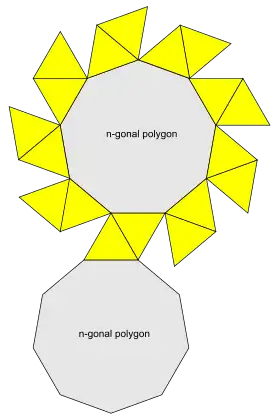 | Faces | 2 regular n-gons 2n equilateral triangles |