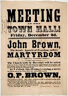 Many American abolitionists took an active role in opposing slavery by supporting the Underground Railroad.[47] This was made illegal by the federal Fugitive Slave Law of 1850, arguably the most hated and most openly evaded federal legislation in the nation's history. Nevertheless, participants like Harriet Tubman, Henry Highland Garnet, Alexander Crummell, Amos Noë Freeman, and others continued with their work. Abolitionists were particularly active in Ohio, where some worked directly in the Underground Railroad. Since only the Ohio River separated free Ohio from slave Kentucky, it was a popular destination for fugitive slaves. Supporters helped them there, in many cases to cross Lake Erie by boat, into Canada. The Western Reserve area of northeast Ohio was "probably the most intensely antislavery section of the country."[48] The Oberlin-Wellington Rescue got national publicity. Abolitionist John Brown grew up in Hudson, Ohio. In the South, members of the abolitionist movement or other people opposing slavery were often targets of lynch mob violence before the American Civil War.[49]