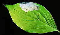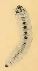 The larvae feed on Cornus mas and Cornus sanguinea. They mine the leaves of their host plant. The mine starts as a corridor of about 10 mm closely following the leaf margin and containing much frass. Later, the direction reverses and turns into a full depth blotch. Here, the frass is deposited in scattered grains. Full-grown larvae cover an oval section at the margin of the blotch with a layer of silk. They then cut this loose and drops to the ground within it.[3] Larvae can be found in July and from the end of August to early October. The species overwinters in the larval stage, within the case.