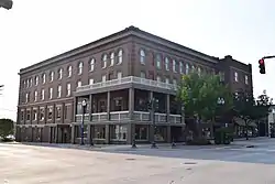 The Antlers Hotel is located in downtown Spirit Lake, Iowa, United States. From the 1880s to the early 1920s an alliance of railroad companies, entrepreneurs, and sportsmen made Spirit Lake and the Iowa Great Lakes region into an upscale tourist destination based on boating, hunting and gun tournaments. Completed in 1902, this hotel was built at the height of that development.[2] A significant addition to the hotel was completed in 1930. Starting in the 1920s tourism started to change with the increasing popularity of the automobile and the decline of the railroads. This is one of the few railroad-era tourism related buildings remaining in the area. It was designed in the Neoclassical style by Austin, Minnesota architect Frank W. Kinney. The three-story brick structure is built on a raised basement. It features brick columns, arched windows, ornamental cornices and a wrap-around veranda. Antlers Hotel was listed on the National Register of Historic Places in 2007.[1] It has been renovated into a 14-unit apartment complex.