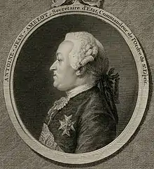 The son of Jean-Jacques Amelot de Chaillou and Marie Anne de Vougny, he held a number of positions throughout his political career. He was a maître des requêtes in 1753, president of the Grand Conseil and an esteemed intendant of Bourgogne in 1764, intendant of finances in 1774, Secretary of State of the Maison du Roi from May 12, 1776, to November 18, 1783.[1] He was a commander of the Order of the Saint-Esprit. He married Françoise Marie Legendre and the couple had two daughters, Marie Catherine (born 1762) and Jeanne Marie (born 1764) who became "comtesse de La Ferté" through marriage.