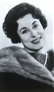 She had a significant career of her own and left several recordings, including of works such as Donizetti's Linda di Chamounix, Meyerbeer's L'Africaine,[3] and Verdi's La battaglia di Legnano[9] and Simon Boccanegra.[3] She appeared in an Italian television production of Andrea Chénier, alongside Mario del Monaco and Giuseppe Taddei in 1955,[10] since released on DVD. She was heard on an Italian radio broadcast of Spontini's Agnes von Hohenstaufen, opposite Montserrat Caballé,[4]