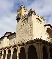 At some point Añoveros became vicedirector of a diocesan Pamplonese weekly La Verdad.[27] It is not entirely clear when he ceased as a parish priest for St. Nicholas in Pamplona; during the war he was officially delegated to Delegación de frentes y hospitales, a branch of Falange catering for the wounded;[28] no sooner than in 1939 Añoveros was nominated representative of the diocese to Casa del Consiliario de Madrid and in this capacity he made few trips abroad. Afterwards he was appointed primer capellán and professor at Escuela Nacional de Mandos del Frente de Juventud, an institute designed to train the Falangist youth cadres.[29] This assignment was terminated in 1942, when he assumed the Santa Maria parish in the central Navarrese town of Tafalla; he was also appointed director of the local Casa Sacerdotal Diocesana.[30] He passed into the living memory of the local population as a young, ingenious and resolute priest, trying to serve the poor community the best;[31] he continued at the post until 1950.[32]
