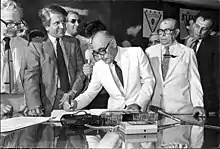 Born in Buenos Aires to Lebanese Argentine immigrants, he was affiliated to Boca Juniors since his youth. He worked as a construction laborer, and eventually became a prosperous businessman as the proprietor of the Alegre Pavement Company. Fond of ping pong, his affable manner helped earn him the friendship of numerous important figures in Argentine politics,[5] including UCR leader (and future President) Raúl Alfonsín, Peronist lawmaker Antonio Cafiero, and numerous members of the CGT trade union. Appointed director of the Buenos Aires Province bureau of the National Nutrional Plan by the newly elected President Alfonsín,[5] Alegre was encouraged to run for the post of President of Boca Juniors by influential friends, and in 1984 became a candidate to succeed Federico Pollack, whom Alfonsín had appointed federal receiver.[2]
