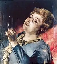 In January 1890, following the death of Professor Rafael Berenguer y Condé, Cortina became the Acting Professor of Line Drawing and sought to be permanently appointed to that chair. Later that year, he went to Madrid as part of the application process but, in early November, was found dead in the attic of his residence on Calle de la Palma, apparently the victim of a robbery.[1] The official cause of death was given as "cerebral congestion" from a blow to the head. Following the memorial service, several of his artist friends auctioned off a selection of their works to raise money for Cortina's widow and children. In 1897, his remains were deposited in the Pantheon at the Cementerio de Valencia.