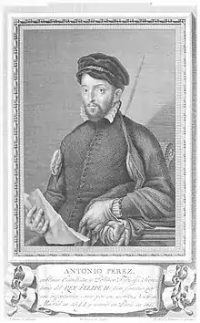 Antonio Pérez (1534–1611) was a Spanish statesman and secretary of king Philip II of Spain.