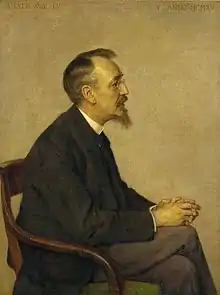In his hometown 's-Hertogenbosch, Derkinderen then went to the Royal School of Applied and Visual Arts from 1878 to 1880. This school was led by J.Th. Stracké. Derkinderen would receive extensive teaching by Stracké, and would later note how much he appreciated his teacher.[3] Three days a week Derkinderen got lessons in architectural drawing by Lambert Hezenmans, architect of the restoration of the famous local St. John's Cathedral. Derkinderen appreciated Hezenmans' work a lot less,[4] but the constant exposure to the work at the cathedral and its art can hardly have failed to influence Derkinderen.