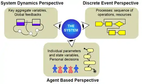 AnyLogic is a multimethod simulation modeling tool developed by The AnyLogic Company (formerly XJ Technologies).[4] It supports agent-based, discrete event, and system dynamics simulation methodologies.[5] AnyLogic is cross-platform simulation software that works on Windows, macOS and Linux.[5] AnyLogic is used to simulate: markets and competition,[6] healthcare,[7][8] manufacturing,[9] supply chains and logistics,[10][11] retail,[12][13] business processes,[14] social[15] and ecosystem dynamics,[16] defense,[17] project and asset management,[18] pedestrian dynamics[19] and road traffic,[20] IT,[21] and aerospace.[22]