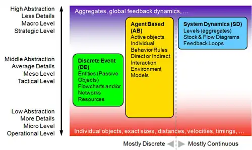 The tool was named AnyLogic, because it supported all three well-known modeling approaches: system dynamics,[15] discrete event simulation,[25] Agent-based modeling.[26] and any combination of these approaches within a single model.[27][28] The first version of AnyLogic was V4,[29] because the numbering continues the numbering of COVERS 3.0.