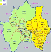 | Administrative divisions | 2 gu (Manan Gu & Dongan Gu), 31 dong |