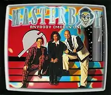 "Anybody (Movin' On)" is a song recorded by German band Masterboy and was released in September 1995, as the second single from their fourth album, Generation of Love. It achieved success in several countries, particularly in Finland, where it peaked at number 8, and in Austria, Belgium and France, where it peaked within the top-20. The song was also a top-30 hit in Germany, Sweden and Switzerland. On the Eurochart Hot 100, it reached a respectable number 37. Outside Europe, it was a huge hit in Israel, peaking at number 5.