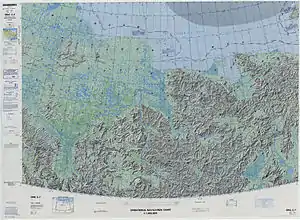 ![]() Defense Mapping Agency topographical map showing the area of the Anyuy Range on the right. |