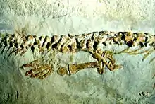 Aphanizocnemus is an extinct genus of lizard from Lebanon. It is a marine lizard that lived during the Late Cretaceous. It is often classified in the family Dolichosauridae as a close relative of snakes, although some studies have placed it as an even closer relative to snakes than dolichosaurids. Only one species of Aphanizocnemus is known, the type species A. libanensis. A. libanensis was named in 1997 on the basis of a single complete skeleton.[1] Although the type locality is unknown, it is said to "almost certainly" originate from the Sannine Formation.[2]