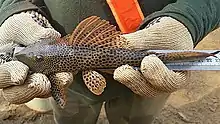 A. emarginatus was originally described as Hypostomus emarginatus by Achille Valenciennes in 1840, although it was transferred to the genus Squaliforma (now considered invalid) after the genus' designation by I. J. H. Isbrücker, I. Seidel, J. Michels, E. Schraml, and A. Werner in 2001.[3] In 2004, Jonathan W. Armbruster classified the species within Hypostomus instead of Squaliforma.[4] In 2016, following a review of Isorineloricaria and Aphanotorulus by C. Keith Ray and Armbruster (both of Auburn University), the species was reclassified as a member of Aphanotorulus, although FishBase still lists the species as Squaliforma emarginata.[4][2]