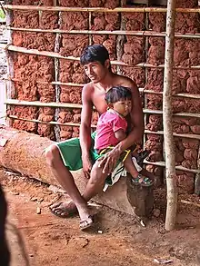 ![]() Apinajé father holding his son | |