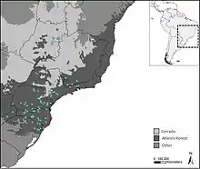 | The species is found in green circles. | |