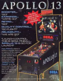 Apollo 13 is a 1995 pinball machine based on the film Apollo 13. It was designed by Joe Kaminkow and Joe Balcer, and released by Sega Pinball. It is notable for its 13-ball multiball mode, the largest of any pinball machine ever made.