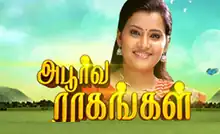 Apoorva Raagangal is a 2015 Indian Tamil-language soap opera that airs on Sun TV.[1] The show premiered on 10 August 2015 to 7 July 2018 for 859 episodes. The show stars Shruthi Raj[2] and Mithun. The show was directed by Justin Jeyaraj and produced by The Purple Productions.[3][4]