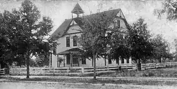 The historical marker continues, "In 1896, voters approved the construction of a new schoolhouse on Fourth Street, later Main Street. The new school opened for the 1897 school year."[4] In 1901 the State of Florida accredited the school, which was named Apopka Union School.[5] That school building was destroyed by a tornado in 1918, and was rebuilt by May 1925.[6][7]