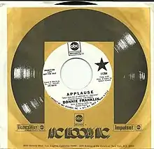 Franklin's single was not only the most successful song from the stage production, but also the most successful of any Broadway song that season among 14 new shows.[4][5] For the stage performance New York reviews, including Time magazine, Plays and Players and The Outer Circle, commented favorably both on Franklin and her performance of the song "Applause".[6][7][8][9] Though some critics were puzzled at the giving of this "rousing, toe-tapping title song" to a supporting actress rather than the lead actress.[10] Norman Lear, who later cast and directed Franklin on TV, recalled "I loved the stride, the purposeful way she moves across a stage,".[11]