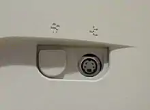 The video input port present on the right side of the monitor was not supported by Apple. It shipped with a rubber plug in this port as seen in the adjacent image.[8]