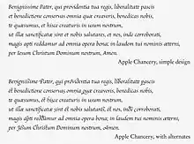 Notable projects include the design of Lucida Grande, at one time the system font for Apple Computer's OS X Operating System and the creation of the core fonts of the Java 2 language and developer kit for Sun Microsystems. These multilingual fonts cover five scripts, including Latin, Greek, Cyrillic, Hebrew and Arabic, and twelve styles, comprising 10,000 characters in all. Other computer platform clients include the Microsoft Corporation, Sun Microsystems’ Solaris division, and Lucent Technologies. Font designs include: Microsoft Wingdings (Windows 95 and 98),[10] Lucida Console (Windows NT), TrueType Chicago, Monaco, Geneva, New York, Apple Chancery, Textile, Capitals (Macintosh OS), Lucida Unicode (Java, Solaris, and Lucent Inferno). Font designs have been additionally licensed by Adobe Systems, Agfa Corporation, ITC, Hewlett-Packard, Linotype Library, Monotype Typography, and the TeX Users Group.[11] Lucida is also available from Bigelow & Holmes' own web site.[12]