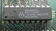 The decoding transceiver ASIC as well as associated patents were controlled by Apple; this required vendors to work more closely with Apple. In the Macintosh SE, the Apple Desktop Bus is implemented in an Apple-branded Microchip PIC16CR54 Microcontroller.