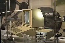 The Apple IIe (styled as Apple //e) is the third model in the Apple II series of personal computers produced by Apple Computer. The e in the name stands for enhanced, referring to the fact that several popular features were now built-in that were formerly only available as upgrades or add-ons in earlier models. Improved expandability combined with the new features made for a very attractive general-purpose machine to first-time computer shoppers. As the last surviving model of the Apple II computer line before discontinuation, and having been manufactured and sold for nearly 11 years with relatively few changes, the IIe earned the distinction of being the longest-lived computer in Apple's history.