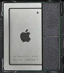 ![]() Image of an M1 processor inside the 2020 Mac Mini | |