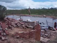 ![]() Remains of a mobile home that was destroyed by the Vilonia tornado. | |