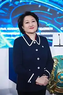 Aqtoty Rahmetollaqyzy Raiymqulova (Kazakh: Ақтоты Рахметоллақызы Райымқұлова, Aqtoty Rahmetollaqyzy Raiymqūlova; born 2 May 1964) is a Kazakh politician who's serving as a Minister of Culture and Sports (17 June 2019 – 11 January 2022), Director of the State Enterprise State Concert Organization "Kazakhconcert named after Roza Baglanova" (6 April, 2022)[1]