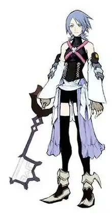 Aqua (Japanese: アクア, Hepburn: Akua) is a fictional character from Square Enix's video game franchise Kingdom Hearts. First making cameo appearances in Kingdom Hearts II and its updated version Final Mix, Aqua is one of the three playable protagonists who is introduced in the 2010 prequel Kingdom Hearts Birth by Sleep. She is one of the Keyblade apprentices training under Master Eraqus alongside her friends Terra and Ventus. As the only one among her friends to obtain the rank of Keyblade Master, Aqua is assigned to monitor Terra and Ventus as she combats dark creatures known as the Unversed.