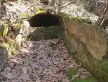 At the bottom of the gorge are two rooms dug out of the tuff bank which were most likely used to house workers during aqueduct construction and completely submerged when the dam was built.