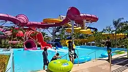 Aqua Planet has a daily guest capacity of up to 5,000 people with its 38 water slides and other attractions.[5] It also hosts two wave pools; one for children and another for adults.[6] The attractions were designed and developed by the Aquatic Development Group.[7][8]