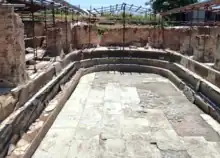 The site extends over about 7 hectares. Today, two large rectangular rooms, the calidarium and tepidarium, are visible, both equipped with a swimming pool, the first surrounded by twelve pillars covered with marble. These were surrounded by no less than three rows of marble seats and with beautiful mosaics with blue, green, yellow, black and red glass-paste tesserae which depicted an explosion of flowers on a white field.