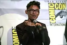 In March 2017, prior to filming, a first look at Aquaman was shown during CinemaCon in Las Vegas, Nevada, with Momoa introducing a video of director James Wan displaying a concept art sizzle reel.[83] Later, on July 22, the film's footage made its debut at San Diego Comic-Con (SDCC) 2017 with a teaser presented by Momoa during the Warner Bros. panel; director Wan presented the footage, stating that "in a lot of ways, this is an origin story,"[84] In April 2018, another teaser, with new footage, was shown by Wan and Momoa at CinemaCon, joined by Amber Heard, Patrick Wilson and Yahya Abdul-Mateen II on stage.[85] Wan teased the conflict between Arthur and Ocean Master, stating that "it's almost a very classic Shakespearean story about brother from another world vs. brother from another world. And it really is a classic story of sibling rivalry."[86]