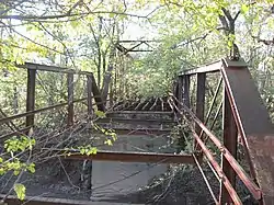 Aqueduct Bridge, also known as the Coffey Bridge and Clay County Bridge # 182, is a historic Pratt through truss and Pratt pony truss bridge located in Perry Township and Sugar Ridge Township, Clay County, Indiana. The original span was built by the Cleveland Bridge and Iron Company in 1880 and the second section by the Vincennes Bridge Company in 1920. It carries Towpath Road over Birch Creek. The original span measures 60 feet long and the second span 102 feet long. They rest on concrete abutments and a central pier.[2]: 5