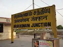Arakkonam Junction railway station (station code: AJJ) is a railway station in Ranipet district, Tamil Nadu. It is one of the oldest railway stations in India, located on the first railway line in South India. It is located on the Guntakal–Chennai Egmore section of Mumbai–Chennai line of the Southern Railway zone.[1]