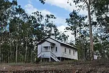 After fifteen years of fund-raising the Our Lady of the Way Catholic Church was blessed and consecrated by Archbshop James Duhig on 26 February 1950.[8][9] In response to the welcome given, the Archbishop referred to the dairying, cattle raising and timber industries in the district and said that for every tree felled for building purposes, one should be planted.[9] This was consistent with his beliefs that more people should think nationally, rather than locally.[10] The church was built by Malachi Rooney of Maryborough.[9]