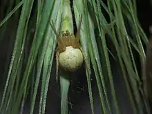 Araniella stems from the Latin word Araneus, meaning "spider." The suffix -ella is a Latin ending for "little."[5] Common name is the six-spotted orb weaver