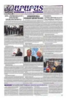 It used to be published daily until 2000, but from June 2001 to 2007, it was published weekly. Today it is published daily. From 1956 to 1965, a literary supplement of the newspaper called Ararad Kragan was also published. It was a literal monthly edited by Hakob Noruni.[4]