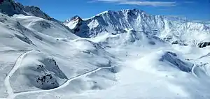 Les Arcs (French pronunciation: [le.z‿aʁk]) is a ski resort located in Savoie, France, in the Tarentaise Valley town of Bourg-Saint-Maurice. Initially created by Robert Blanc and Roger Godino, it is a part of the huge Paradiski system which is under ownership by Compagnie des Alpes, a French-listed company owning several other ski resorts as well as theme parks.