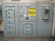 Circuit breakers are often the primary defense against current runaway, especially if there are no secondary fuses, so if an arc flash develops in a breaker there may be nothing to stop a flash from going out of control. Once an arc flash begins in a breaker, it can quickly migrate from a single circuit to the busbars of the panel itself, allowing very high energies to flow. Precautions must usually be used when switching circuit breakers, such as standing off to the side while switching to keep the body out of the way, wearing protective clothing, or turning off equipment, circuits and panels downline prior to switching. Very large switchgear is often able to handle very high energies and, thus, many places require the use of full protective equipment before switching one on.[8]