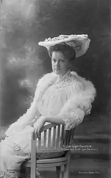 Archduchess Eleonora of Austria (28 November 1886 – 26 May 1974) was a daughter of Archduke Charles Stephen of Austria and a first cousin of King Alphonso XIII of Spain. She was member of the Teschen branch of the House of Habsburg-Lorraine and an Archduchess of Austria and Princess of Bohemia, Hungary, and Tuscany by birth. She renounced to her titles upon her morganatic marriage to Alfons Kloss, the captain of her father's yacht. During World War II her sons served in the German army.[1]