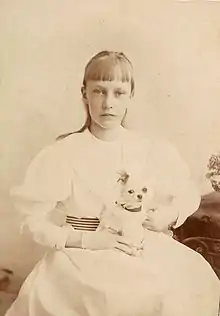 After Rudolf's death, Franz Joseph took over guardianship of Erzsi; by his order, she was forbidden to leave Austria with her mother.[1] At a young age she displayed a strong personality, as well as an opposition to the Viennese court.