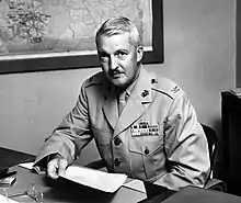Following the War, O'Neil remained in the Marine Corps and served as commanding officer of the Marine Barracks at Mare Island Navy Yard, California and Commanding officer, 1st Infantry Training Regiment at Camp Lejeune, North Carolina. While in the latter capacity, he was responsible for the training of replacement personnel following the Korean War. O'Neil retired from the active duty on July 1, 1957 after 30 years of commissioned service and was advanced to the rank of Brigadier general for having been specially commended in combat.[1]